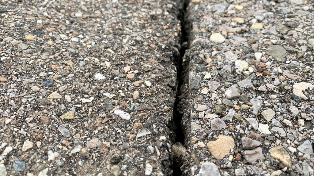In die Risse dringt im Winter Wasser ein. Das Wasser gefriert und lässt die Oberläche aufplatzen. Wir kennen das von Straßen und Gehwegen.
